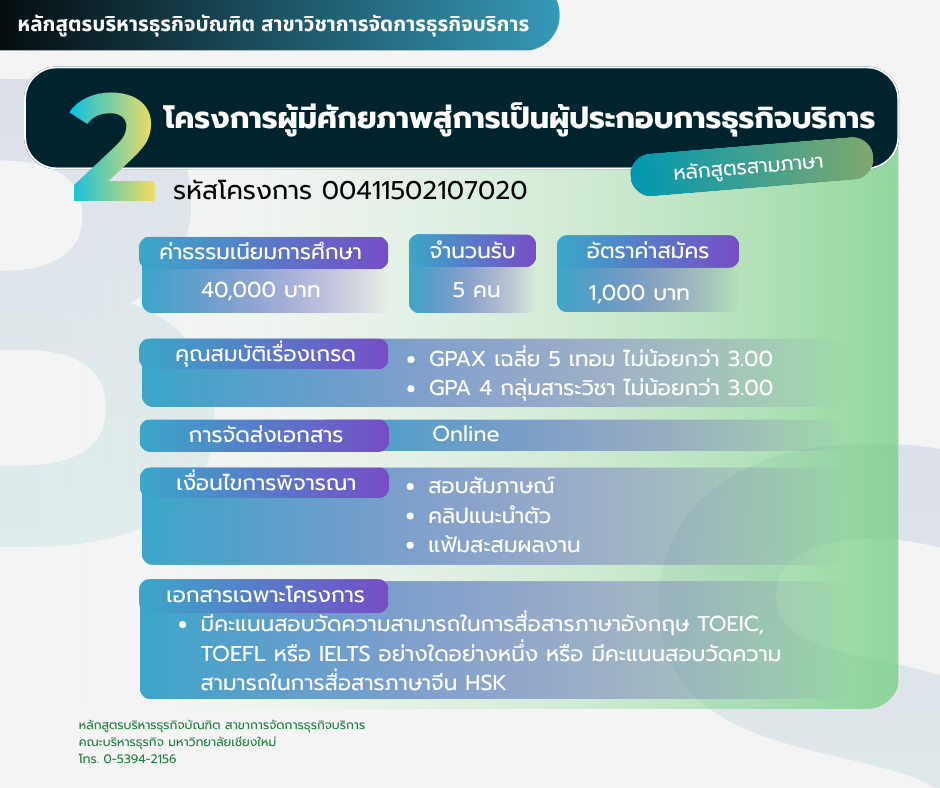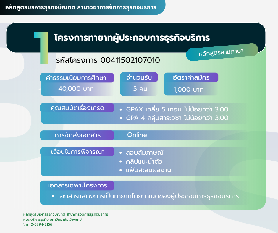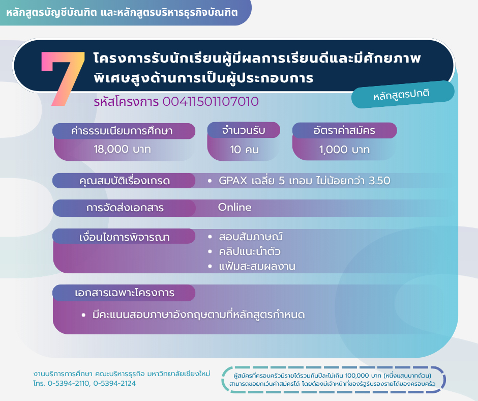 โครงการรับนักเรียนที่มีผลการเรียนดีและเป็นทายาทผู้ประกอบการ