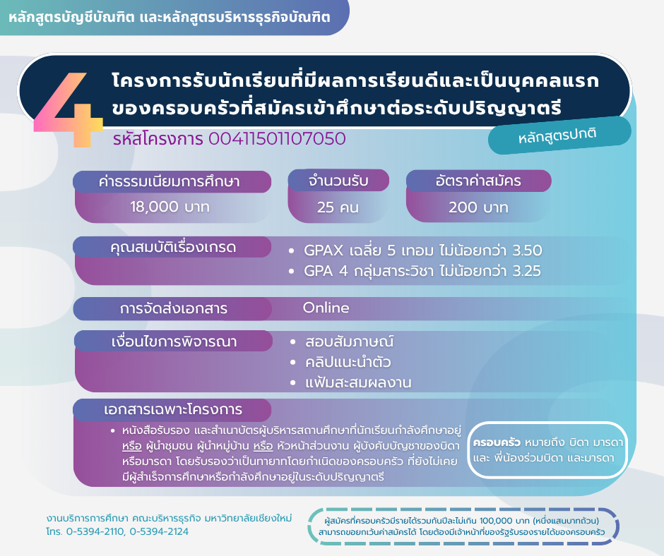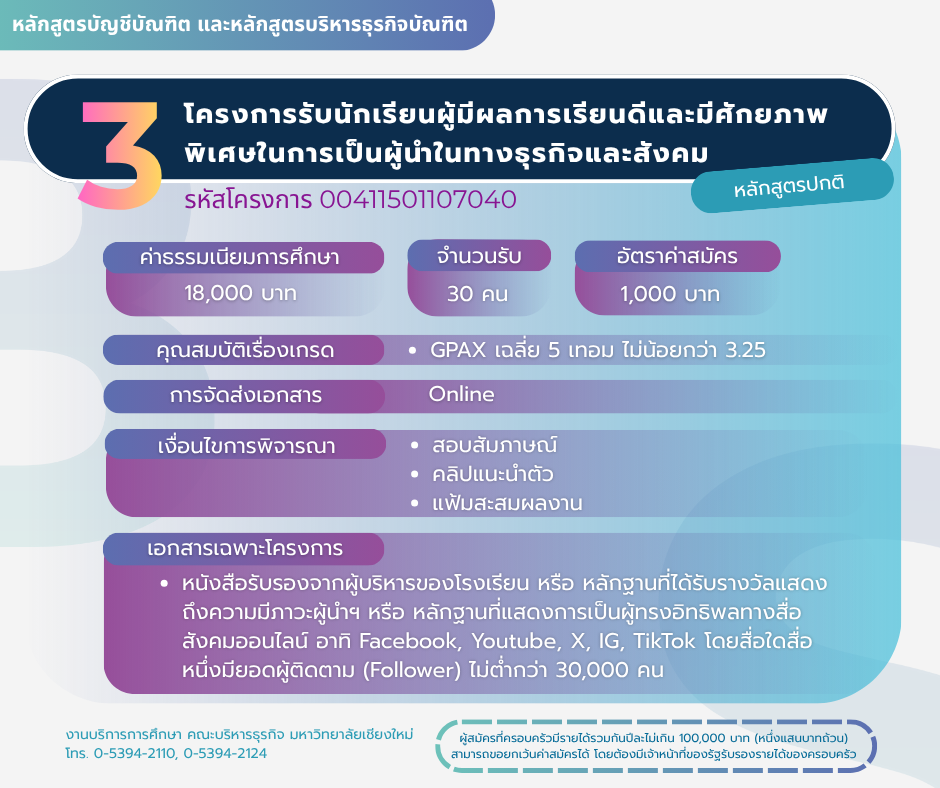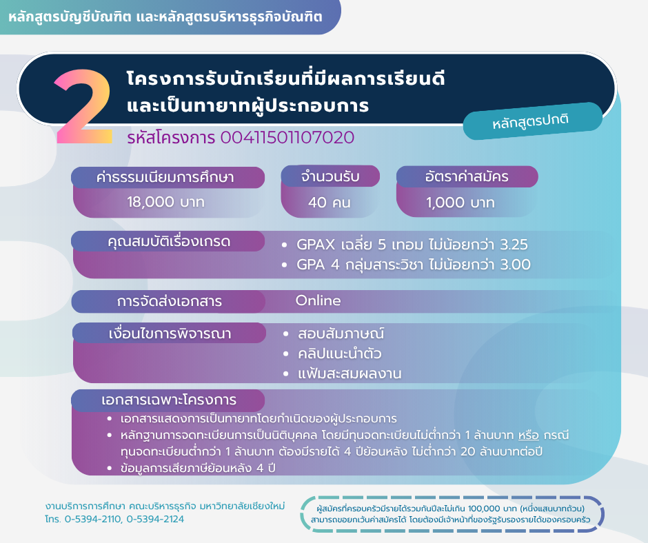 โครงการรับนักเรียนที่มีผลการเรียนดีและเป็นทายาทศิษย์เก่า บัญชี-บริหารธุรกิจ