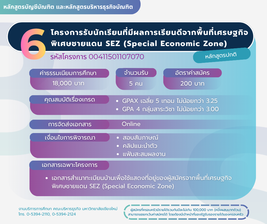 โครงการรับนักเรียนที่มีผลการเรียนดีจากพื้นที่เศรษฐกิจพิเศษชายแดน SEZ (Special Economic Zone)