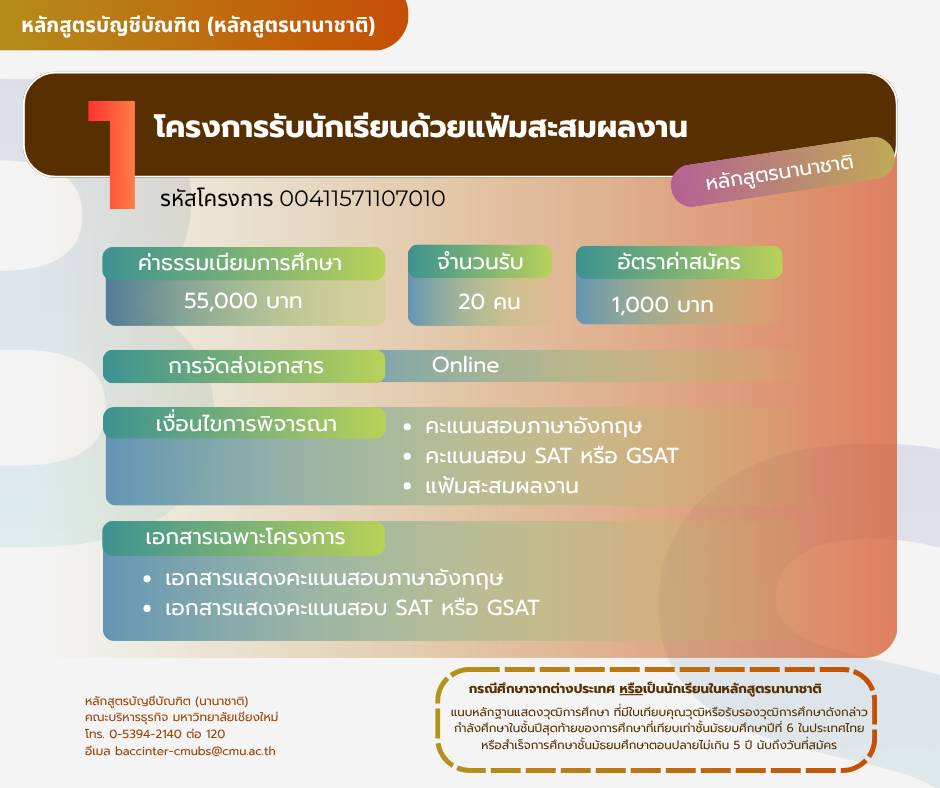 โครงการรับนักเรียนด้วยแฟ้มสะสมผลงาน สาขาวิชาการบัญชี ภาคปกติ (หลักสูตรนานาชาติ)